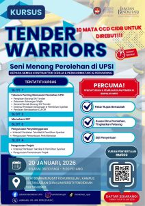 Daftar sekarang untuk Kursus Tender Warriors: Seni Menang Perolehan di UPSI dan mula bina keupayaan syarikat anda menembusi pasaran perolehan universiti! Pelajari strategi sebenar penyediaan tender, rahsia penilaian teknikal, serta teknik meningkatkan peluang kemenangan secara profesional dan tersusun.